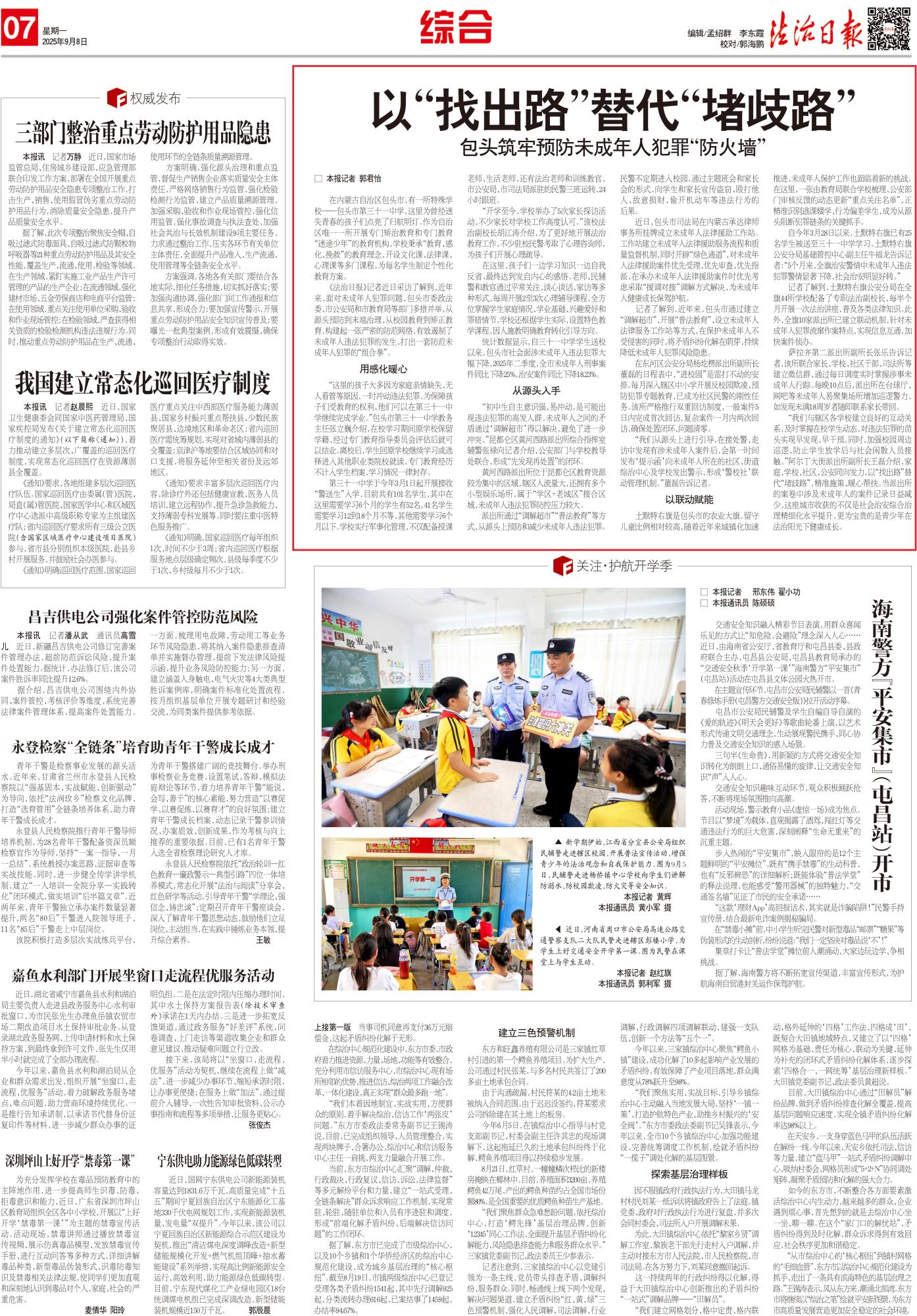 “我們與轄區(qū)各學校建立良好的互動關系,及時掌握在校學生動態(tài),對違法犯罪的苗頭實現(xiàn)早發(fā)現(xiàn)、早干預。同時,加強校園周邊巡邏,防止學生放學后與社會閑散人員接觸?!卑柖〈蠼峙沙鏊彼L王磊介紹,家庭、學校、社區(qū)、公安同向發(fā)力,以“找出路”替代“堵歧路”,精準施策、暖心幫扶。當派出所的案卷中涉及未成年人的案件記錄日益減少,這座城市收獲的不僅是社會治安綜合治理精細化水平提升,更為寶貴的是青少年在法治陽光下健康成長。(記者 郭君怡)