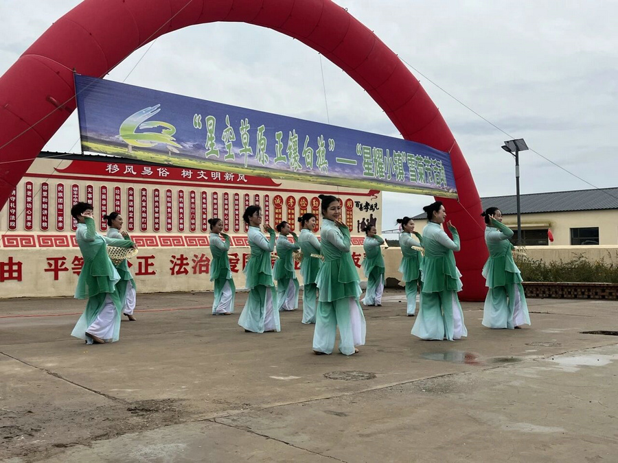 歌從星空草原來,意向雪菊花海去。開幕式共分為“相會(huì)星空”“相聚星空”“相約星空”三個(gè)篇章進(jìn)行,將“春耕耘、夏耕夢(mèng)、秋豐歌、冬蘊(yùn)藏”的意境貫穿其中,勾勒出鄉(xiāng)村振興的壯麗畫卷與草原兒女幸福生活的美好圖景,烘托出各族兒女風(fēng)雨同舟、血脈相連,在這遼闊草原上不忘初心、同心向黨,共建美好家園的氣氛。