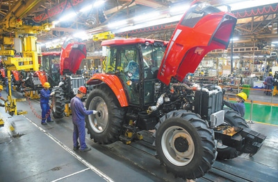 智能制造生產(chǎn)線、數(shù)字化操作系統(tǒng)、自動搬運機器人……在中國一拖集團有限公司(以下簡稱“中國一拖”)生產(chǎn)車間內(nèi),智能化、數(shù)字化技術(shù)貫穿生產(chǎn)的每一個環(huán)節(jié)。在這里,每隔幾分鐘就有1臺拖拉機下線。中國一拖歐洲業(yè)務(wù)負責人范子午表示,近期持續(xù)接到歐洲市場訂單,大家都在忙著排產(chǎn)和發(fā)運,并根據(jù)用戶需求不斷調(diào)整和完善產(chǎn)品細節(jié)。