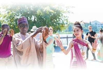 昆明滇池路七公里大轉(zhuǎn)盤(pán)處,“民族大團(tuán)結(jié)”雕塑引人注目,不遠(yuǎn)處便是云南民族村。造型各異的少數(shù)民族建筑、各具特色的民族服飾、熱情洋溢的民族舞樂(lè)……加納通訊社首席執(zhí)行官阿爾貝特·科菲·奧烏蘇加入人群,踩著鼓點(diǎn)起舞。他說(shuō):“在這里看到了豐富多彩的中國(guó)少數(shù)民族文化,我能感受到其中的生機(jī)與活力?!?/P>