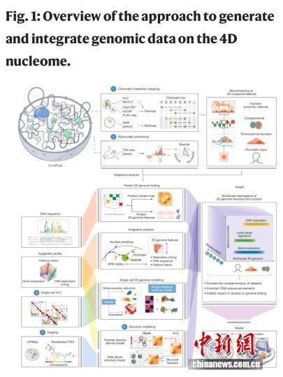 該論文介紹,人類染色體的三維組織結(jié)構(gòu),對(duì)于協(xié)調(diào)遺傳物質(zhì)調(diào)控生物反應(yīng)過程起到重要作用。DNA纏繞組蛋白形成名為染色質(zhì)的復(fù)合體,存儲(chǔ)在細(xì)胞核內(nèi)。大量染色質(zhì)位點(diǎn)可通過生物化學(xué)修飾來(lái)調(diào)控基因表達(dá)。繪制這一三維結(jié)構(gòu)及其如何經(jīng)時(shí)(第四維度)改變的工作,被稱為4D核組學(xué)。