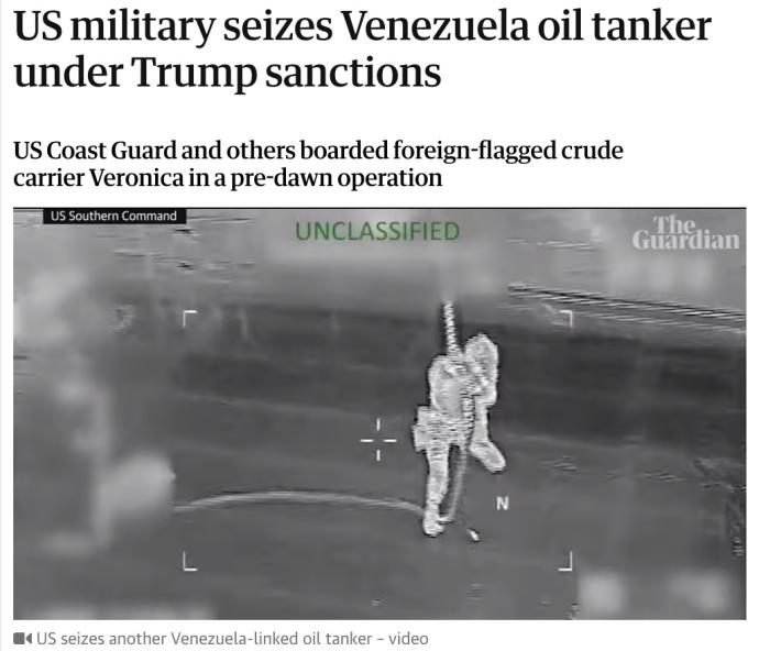 報道稱,這是自本月初美方對委內瑞拉發(fā)動突然襲擊,強行控制委內瑞拉總統(tǒng)馬杜羅夫婦以來扣押的第六艘油輪。