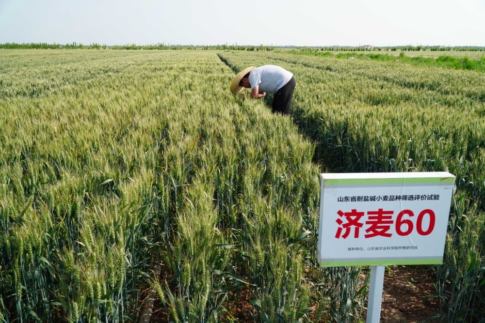 “這是山東省農(nóng)業(yè)科學(xué)院作物所小麥遺傳育種團(tuán)隊(duì)專門針對旱地、鹽堿地培育的新品種。”山東省農(nóng)業(yè)科學(xué)院作物所研究員曹新有說,2022年夏收時(shí)測產(chǎn),在土壤含鹽量3.75‰的土地上,“濟(jì)麥60”平均畝產(chǎn)460.98公斤,創(chuàng)鹽堿地小麥高產(chǎn)紀(jì)錄。