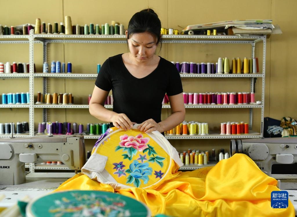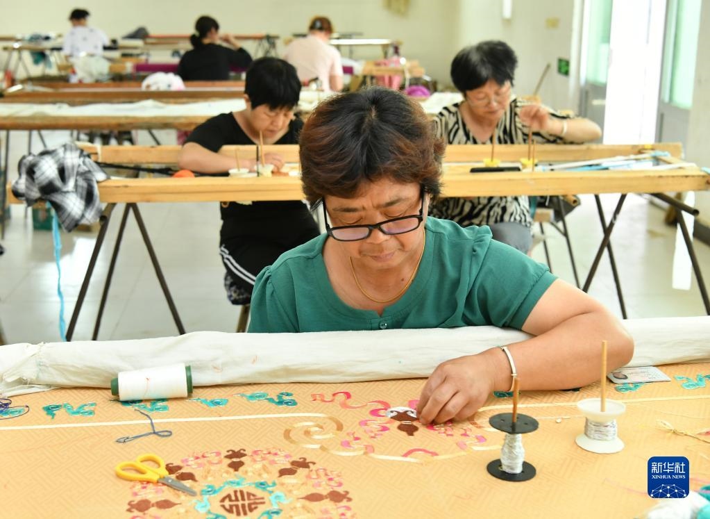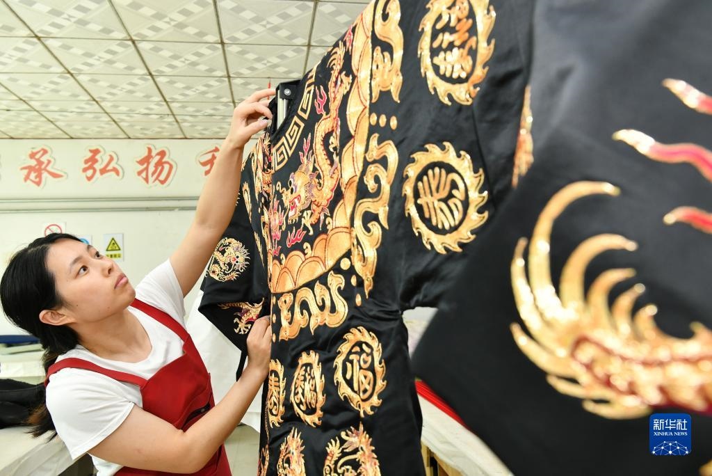河北省肅寧縣邵莊鄉(xiāng)東高家口村的戲曲服裝服飾制作技藝至今已傳承百余年,2017年被列入滄州市市級非物質文化遺產名錄。近年來,當?shù)卦谕七M產業(yè)富民的過程中,積極推進傳統(tǒng)技藝與現(xiàn)代工業(yè)生產有機融合,成立、引進服裝加工企業(yè),為100多名當?shù)亓羰貗D女提供就業(yè)崗位,在促進居民增收的同時,推動了傳統(tǒng)非遺的傳承。新華社記者 牟宇 攝