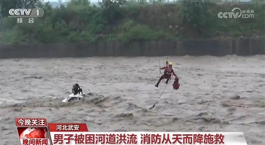 7月30日下午,河北武安一男子駕車(chē)涉水過(guò)橋時(shí),被湍急的洪水沖入洺河河道近百米,救援人員接警后立即趕往現(xiàn)場(chǎng)。從現(xiàn)場(chǎng)情況看,因水流過(guò)于湍急,被困車(chē)輛隨急流翻滾,洪流一度沒(méi)過(guò)車(chē)頂。現(xiàn)場(chǎng)指揮員隨即協(xié)調(diào)起吊車(chē)等工程車(chē)輛協(xié)助進(jìn)行救援,最終經(jīng)過(guò)1小時(shí)20分的驚險(xiǎn)救援,被困男子成功獲救。