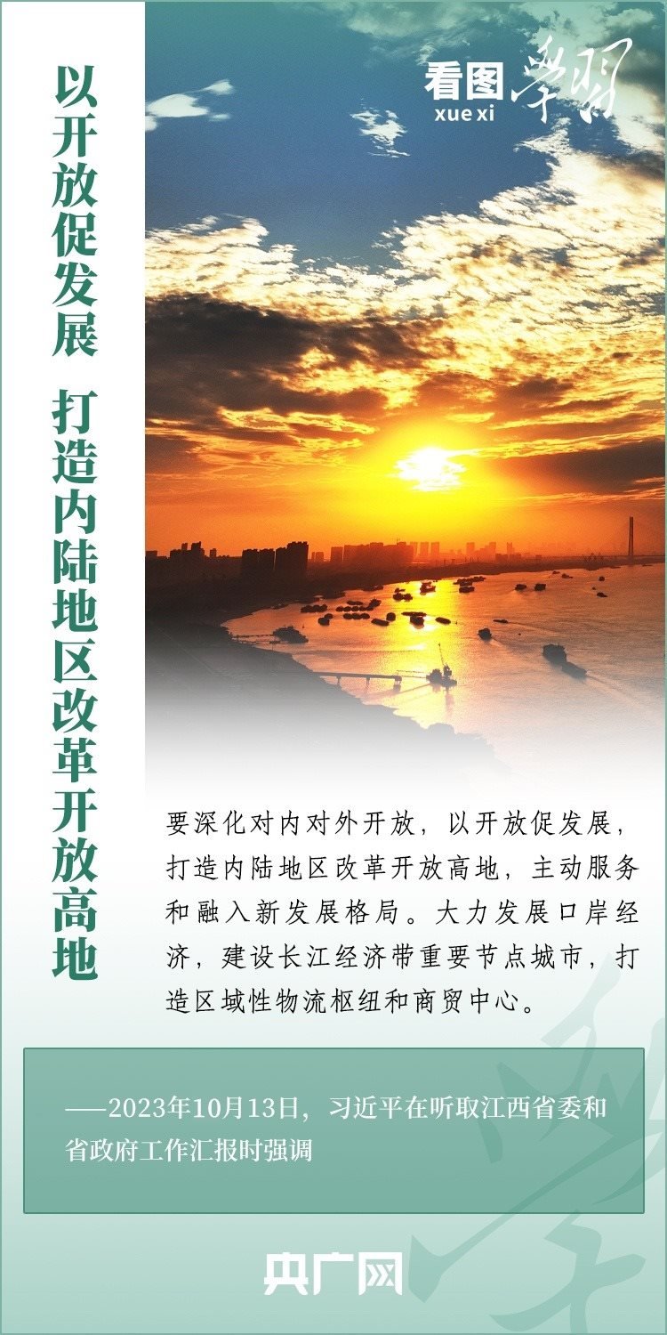 10月10日至13日,習(xí)近平總書記在江西九江、景德鎮(zhèn)、上饒等地,深入長(zhǎng)江岸線、企業(yè)、歷史文化街區(qū)、農(nóng)村等進(jìn)行調(diào)研??倳洀?qiáng)調(diào),江西要著眼高質(zhì)量發(fā)展、綠色發(fā)展、低碳發(fā)展等新要求,解放思想、開拓進(jìn)取,揚(yáng)長(zhǎng)補(bǔ)短、固本興新,努力在加快革命老區(qū)高質(zhì)量發(fā)展上走在前、在推動(dòng)中部地區(qū)崛起上勇爭(zhēng)先、在推進(jìn)長(zhǎng)江經(jīng)濟(jì)帶發(fā)展上善作為,奮力譜寫中國(guó)式現(xiàn)代化江西篇章。一起來(lái)學(xué)習(xí)!
