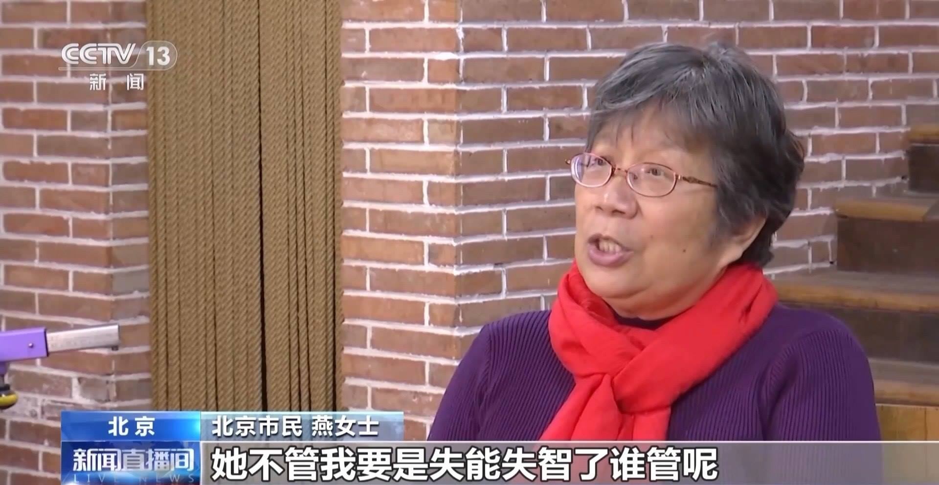 北京市民 燕女士:只是這么一說,她是同意的,但是具體的就沒談,因為人家也是上班的,工作也比較忙,一切事都是由她管,她不管,我要是失能失智了,誰管呢?我也沒地兒找去,我認識的人范圍比較小,所以只有這樣。