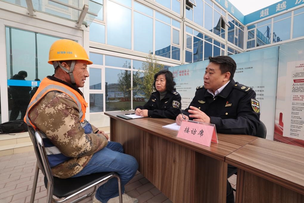圖為北京市根治拖欠農民工工資工作協(xié)調小組在新國展二期建設工地進行現(xiàn)場接訪。(北京市人社局供圖)