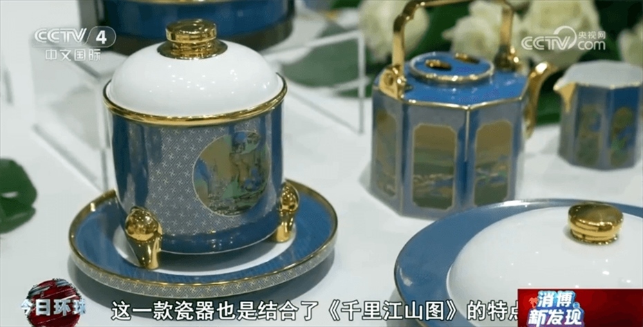 江西省景德鎮(zhèn)市商務(wù)局工作人員章少聰介紹稱:“這一幅畫是北宋王希孟先生創(chuàng)作的,叫作《千里江山圖》。這一款瓷器也是結(jié)合了《千里江山圖》的特點(diǎn),把中國(guó)傳統(tǒng)畫中的山水、花鳥都完全在瓷器上面展現(xiàn)出來(lái)。”