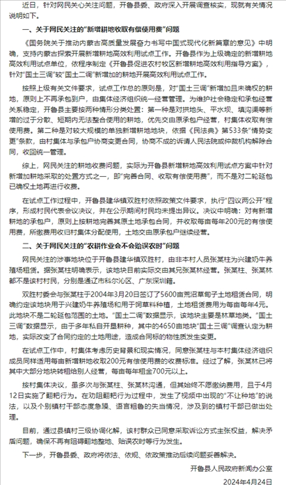 ·新增耕地收取有償使用費(fèi)?農(nóng)耕作業(yè)會(huì)不會(huì)貽誤農(nóng)時(shí)?內(nèi)蒙古開魯縣回應(yīng)。