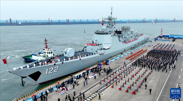 全國多地以多種形式慶祝人民海軍成立75周年,海軍組織“戰(zhàn)艦回家鄉(xiāng)”活動(dòng),唐山艦靠泊河北省唐山市。