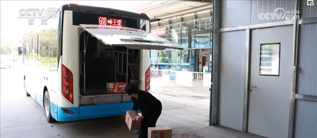 在專門定制的客貨郵公交車上,除了快遞包裹,還有一些團購的生活物資。司機介紹,因為村里老人居多,到鎮(zhèn)上買東西不方便,手機團購生活物資后,公交車就會一起帶到各村的集士驛站。