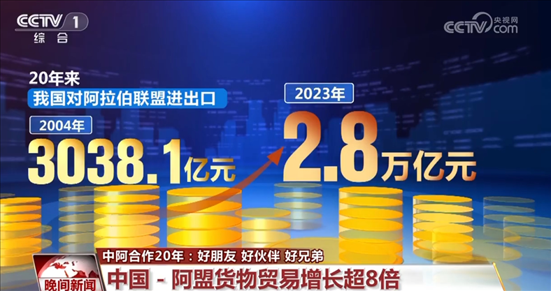 據(jù)海關(guān)統(tǒng)計,20年來,我國對阿拉伯聯(lián)盟進(jìn)出口由2004年的3038.1億元人民幣大幅增長820.9%至2023年的2.8萬億元。今年前4個月,我國對阿盟進(jìn)出口9461.7億元,創(chuàng)歷史同期新高,同比增長3.8%,占我國對外貿(mào)易總值的6.9%。