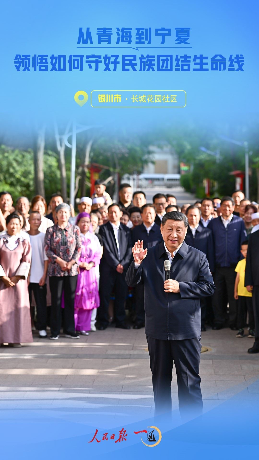 6月19日,習(xí)近平總書(shū)記來(lái)到寧夏考察調(diào)研,在銀川市金鳳區(qū)長(zhǎng)城花園社區(qū),了解推動(dòng)各族群眾交往交流交融等情況。此前一天,習(xí)近平總書(shū)記在青海果洛西寧民族中學(xué)考察,要求“把鑄牢中華民族共同體意識(shí)作為學(xué)校思政課的一個(gè)重點(diǎn)”。