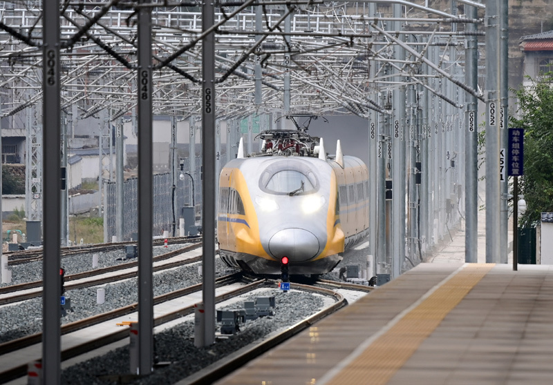 9月11日,西延高鐵聯(lián)調(diào)聯(lián)試綜合檢測列車駛?cè)胙影舱尽?/span>