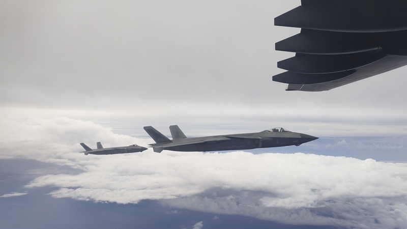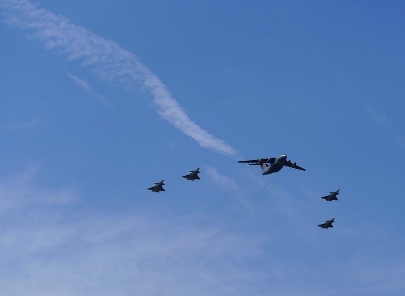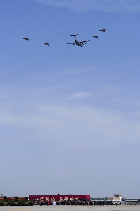 9月12日,第十二批在韓中國人民志愿軍烈士遺骸回國。這是為接運烈士遺骸回國的運-20專機伴飛護航的殲-20飛機。