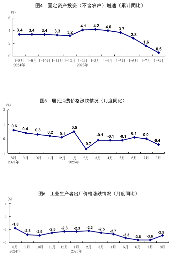 8月份,全國(guó)工業(yè)生產(chǎn)者出廠(chǎng)價(jià)格同比下降2.9%,降幅比上月收窄0.7個(gè)百分點(diǎn),環(huán)比持平;全國(guó)工業(yè)生產(chǎn)者購(gòu)進(jìn)價(jià)格同比下降4.0%,降幅收窄0.5個(gè)百分點(diǎn),環(huán)比持平。1—8月份,全國(guó)工業(yè)生產(chǎn)者出廠(chǎng)價(jià)格和購(gòu)進(jìn)價(jià)格同比分別下降2.9%、3.3%。