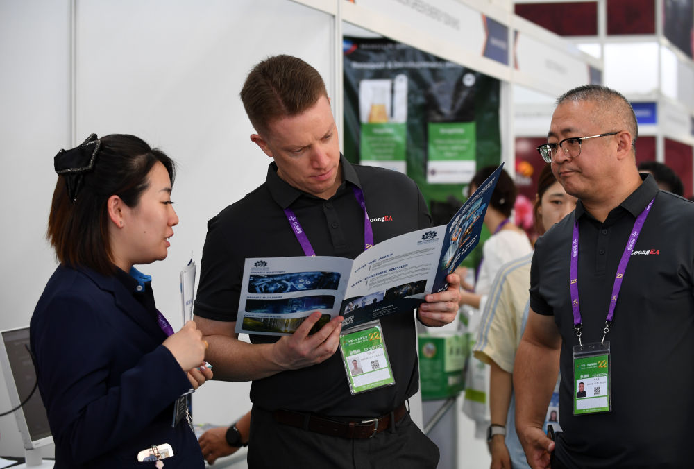 9月17日,在廣西南寧國(guó)際會(huì)展中心,人們?cè)谡褂[現(xiàn)場(chǎng)交流。新華社記者 陸波岸 攝