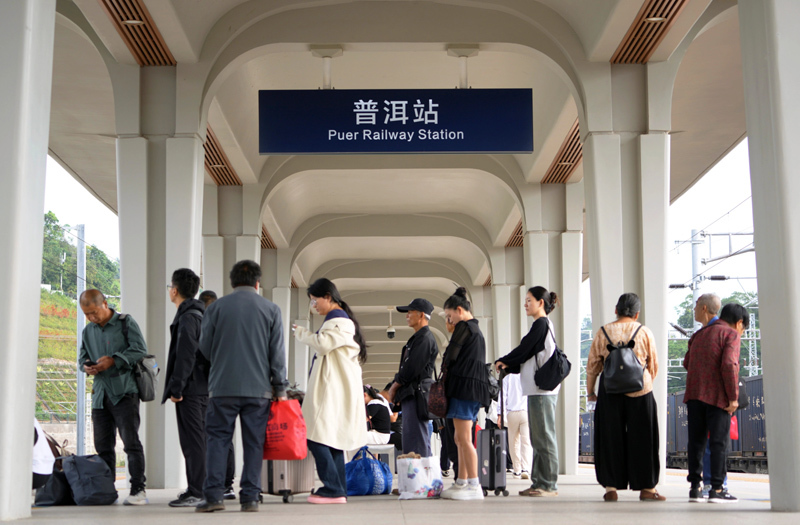 9月20日,旅客在中老鐵路普洱站乘車(chē)。
