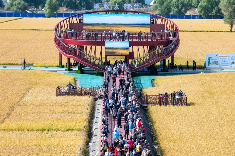 9月23日,2025年中國農(nóng)民豐收節(jié)黑龍江省主場活動(dòng)在北大荒農(nóng)墾集團(tuán)閆家崗農(nóng)場稻田藝術(shù)公園拉開帷幕,人們歡聚一堂,共享一場同耕耘、共歡歌的豐收盛宴。