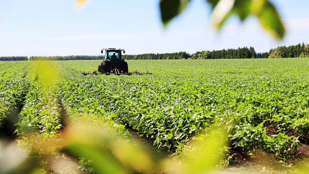 在北大荒集團(tuán)黑龍江紅星農(nóng)場(chǎng)第一管理區(qū)有機(jī)大豆田里,搭載北斗導(dǎo)航系統(tǒng)的大馬力機(jī)車開(kāi)展有機(jī)大豆二次中耕作業(yè)(2025年7月7日攝)。新華社發(fā)(侯越攝)