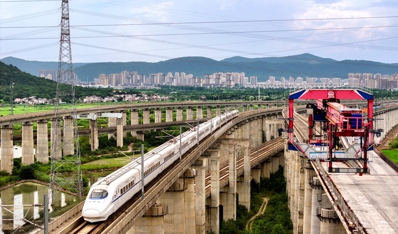 當(dāng)日,隨著最后一榀長(zhǎng)32.6米、重431.75噸的箱梁精準(zhǔn)架設(shè)至預(yù)定位置,標(biāo)志著巢馬城際鐵路全線箱梁架設(shè)完成,為無砟軌道施工和全線按期通車奠定堅(jiān)實(shí)基礎(chǔ)。巢馬城際鐵路是國(guó)家“八縱八橫”高鐵網(wǎng)滬漢蓉快速通道合肥至上海間的重要組成部分,設(shè)計(jì)時(shí)速350公里。