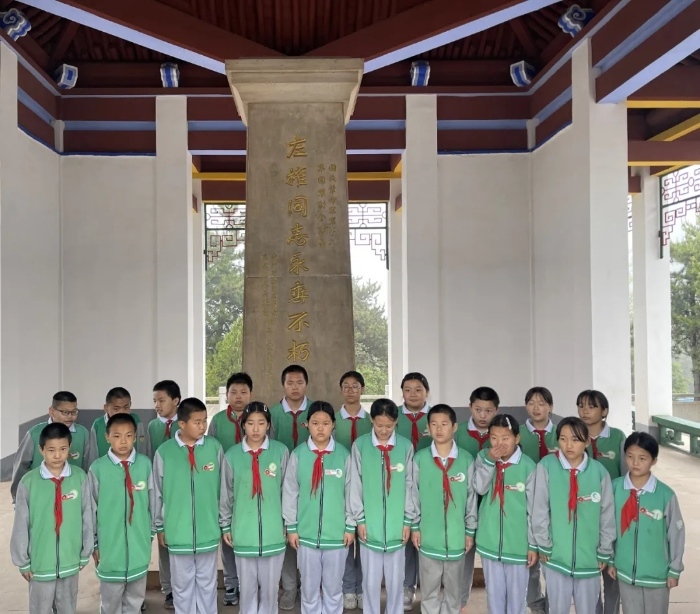 2025年5月23日,澤城九年一貫制學校五、六年級的學生舉行活動紀念左權將軍。(新華網 于楊 攝)