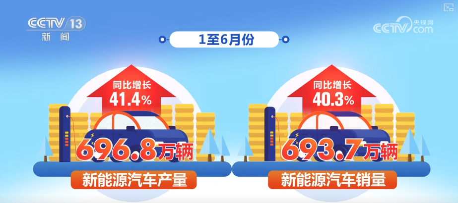 2025年以來,我國實施更加積極有為的宏觀政策,經(jīng)濟運行總體平穩(wěn)。1至6月份,汽車市場延續(xù)良好態(tài)勢,產(chǎn)銷量均超過1500萬輛,同比均實現(xiàn)10%以上較高增長。其中,新能源汽車產(chǎn)銷量分別完成696.8萬輛和693.7萬輛,同比分別增長41.4%和40.3%,新能源汽車新車銷量達到汽車新車總銷量的44.3%。