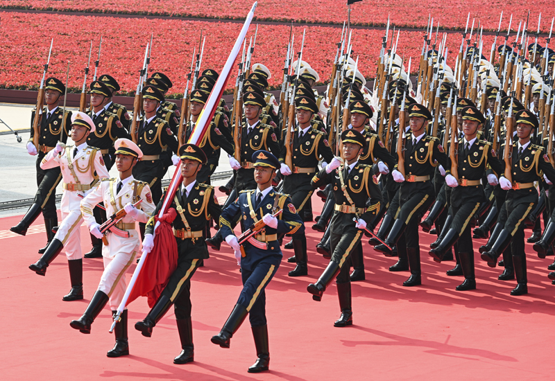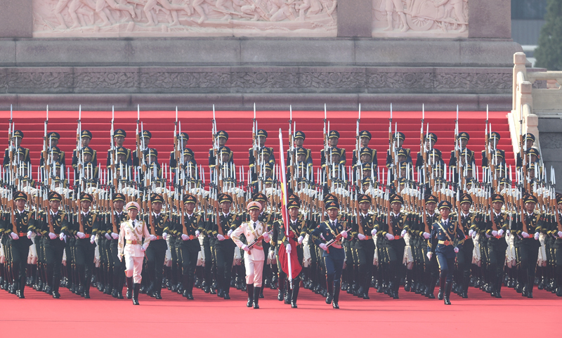 9月3日,紀念中國人民抗日戰(zhàn)爭暨世界反法西斯戰(zhàn)爭勝利80周年大會在北京隆重舉行。這是國旗護衛(wèi)隊在行進中。