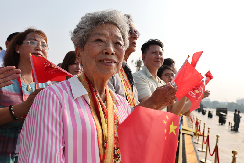 9月3日,紀念中國人民抗日戰(zhàn)爭暨世界反法西斯戰(zhàn)爭勝利80周年大會在北京隆重舉行。這是來自香港的抗戰(zhàn)老兵林珍(前)。