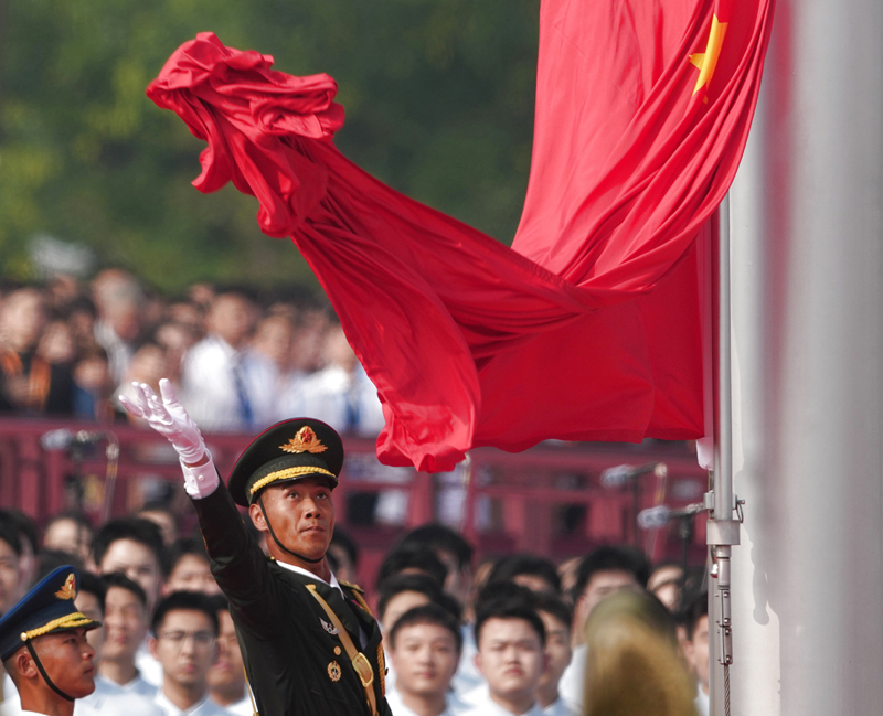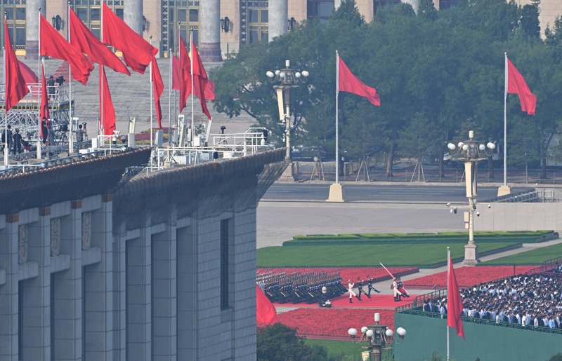 9月3日,紀念中國人民抗日戰(zhàn)爭暨世界反法西斯戰(zhàn)爭勝利80周年大會在北京隆重舉行。這是天安門廣場舉行隆重的升國旗儀式。