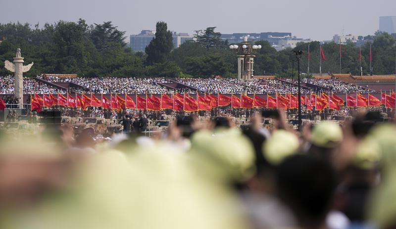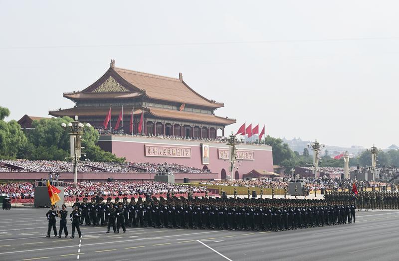 9月3日,紀(jì)念中國人民抗日戰(zhàn)爭暨世界反法西斯戰(zhàn)爭勝利80周年大會在北京隆重舉行。這是徒步方隊接受檢閱。