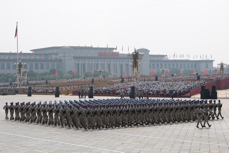 9月3日,紀(jì)念中國人民抗日戰(zhàn)爭暨世界反法西斯戰(zhàn)爭勝利80周年大會在北京隆重舉行。這是維和部隊方隊接受檢閱。
