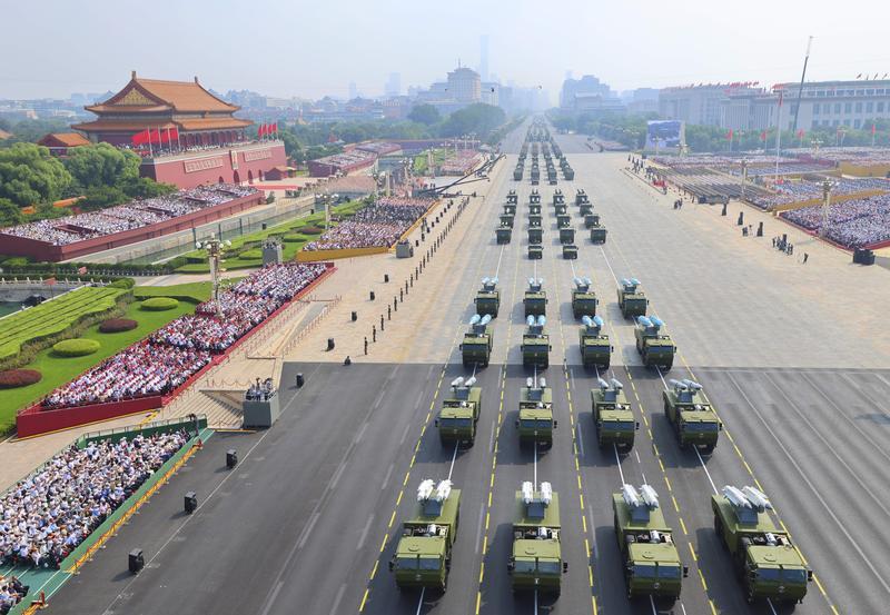 9月3日,紀(jì)念中國人民抗日戰(zhàn)爭暨世界反法西斯戰(zhàn)爭勝利80周年大會在北京隆重舉行。這是火箭軍方隊接受檢閱。