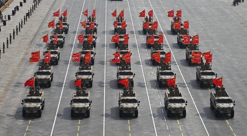9月3日,紀(jì)念中國人民抗日戰(zhàn)爭暨世界反法西斯戰(zhàn)爭勝利80周年大會在北京隆重舉行。這是裝備方隊接受檢閱。