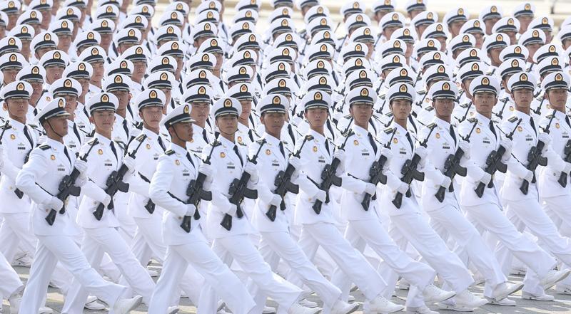 9月3日,紀(jì)念中國人民抗日戰(zhàn)爭暨世界反法西斯戰(zhàn)爭勝利80周年大會在北京隆重舉行。這是中國人民解放軍海軍方隊接受檢閱。