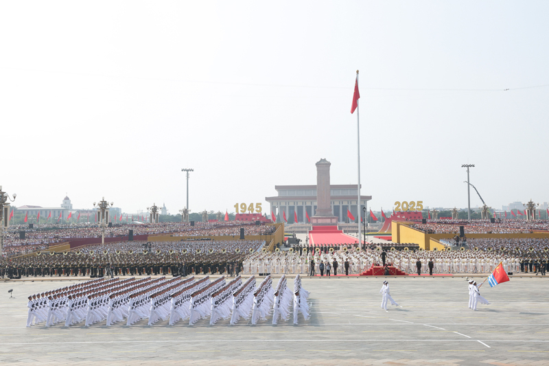 9月3日,紀(jì)念中國(guó)人民抗日戰(zhàn)爭(zhēng)暨世界反法西斯戰(zhàn)爭(zhēng)勝利80周年大會(huì)在北京隆重舉行。這是海軍方隊(duì)接受檢閱。