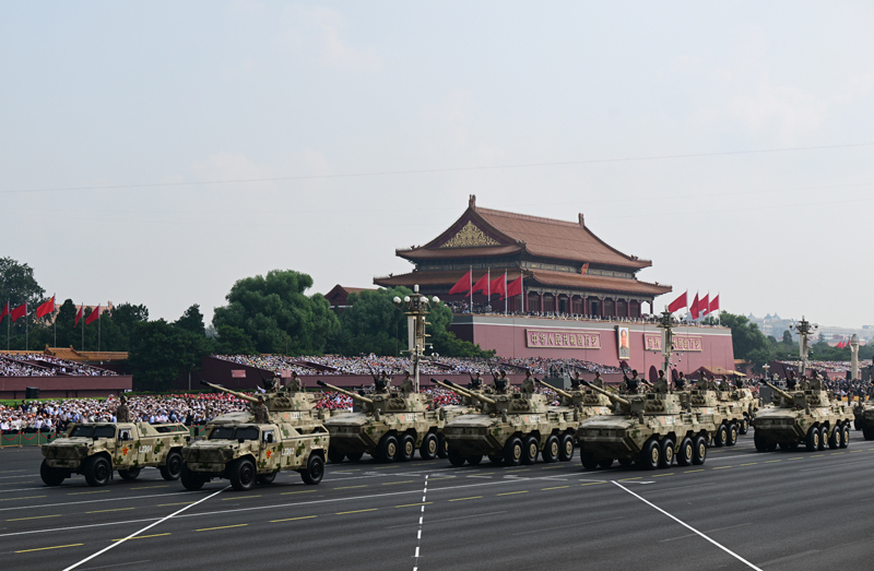 9月3日,紀(jì)念中國(guó)人民抗日戰(zhàn)爭(zhēng)暨世界反法西斯戰(zhàn)爭(zhēng)勝利80周年大會(huì)在北京隆重舉行。這是地面突擊方隊(duì)接受檢閱。