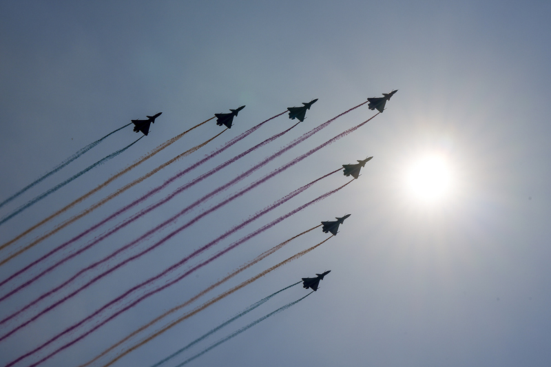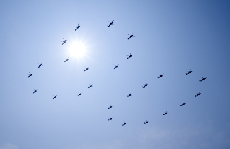 9月3日,紀(jì)念中國(guó)人民抗日戰(zhàn)爭(zhēng)暨世界反法西斯戰(zhàn)爭(zhēng)勝利80周年大會(huì)在北京隆重舉行。這是空中梯隊(duì)接受檢閱。