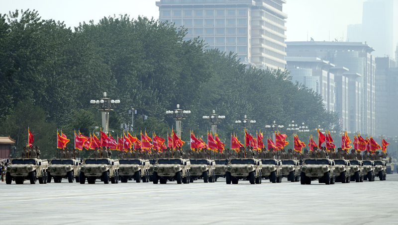 9月3日,紀(jì)念中國(guó)人民抗日戰(zhàn)爭(zhēng)暨世界反法西斯戰(zhàn)爭(zhēng)勝利80周年大會(huì)在北京隆重舉行。這是信息支援部隊(duì)方隊(duì)接受檢閱。