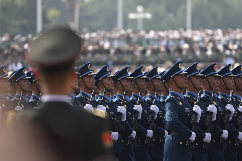 9月3日,紀(jì)念中國(guó)人民抗日戰(zhàn)爭(zhēng)暨世界反法西斯戰(zhàn)爭(zhēng)勝利80周年大會(huì)在北京隆重舉行。這是空軍方隊(duì)接受檢閱。
