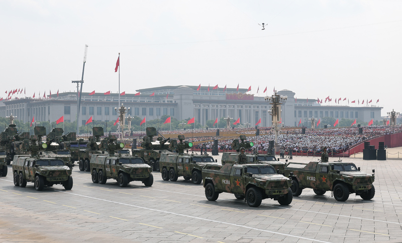 9月3日,紀(jì)念中國人民抗日戰(zhàn)爭暨世界反法西斯戰(zhàn)爭勝利80周年大會在北京隆重舉行。這是裝備保障方隊接受檢閱。