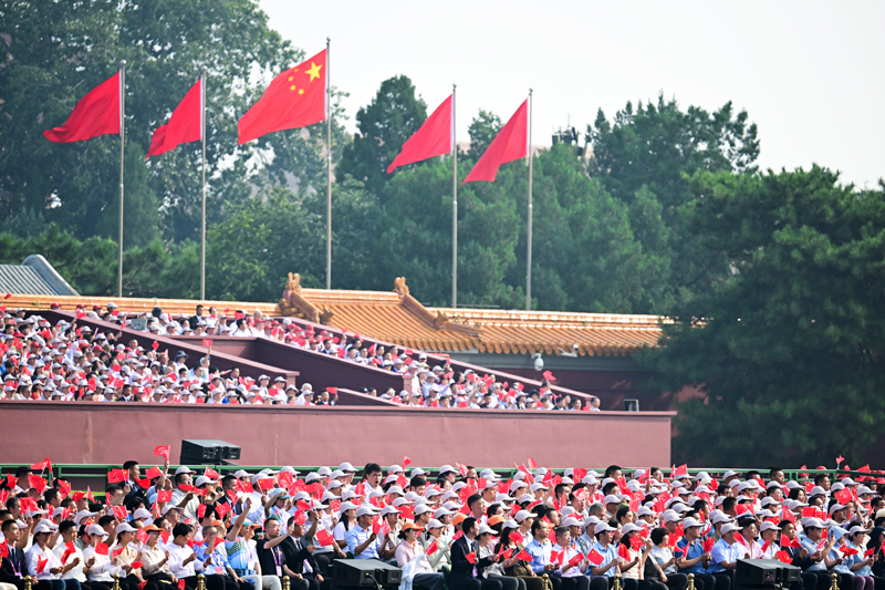 9月3日,紀(jì)念中國人民抗日戰(zhàn)爭暨世界反法西斯戰(zhàn)爭勝利80周年大會在北京隆重舉行。這是觀禮嘉賓。