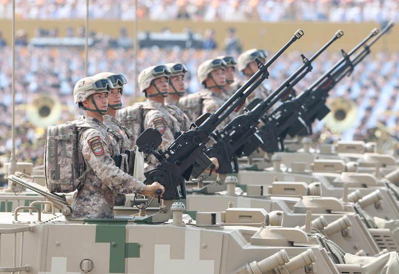 9月3日,紀(jì)念中國人民抗日戰(zhàn)爭暨世界反法西斯戰(zhàn)爭勝利80周年大會在北京隆重舉行。這是網(wǎng)絡(luò)空間作戰(zhàn)方隊接受檢閱。