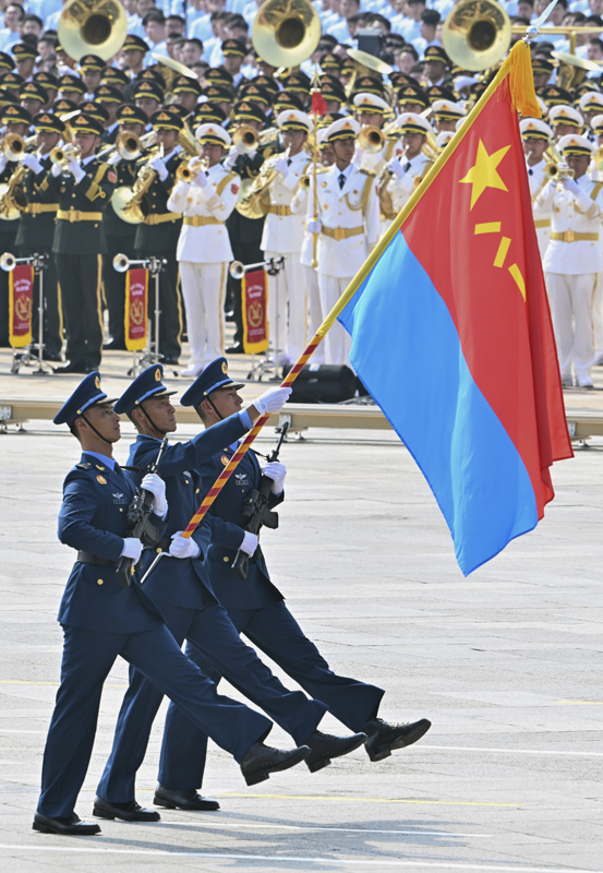 9月3日,紀(jì)念中國人民抗日戰(zhàn)爭暨世界反法西斯戰(zhàn)爭勝利80周年大會在北京隆重舉行。這是空軍方隊接受檢閱。
