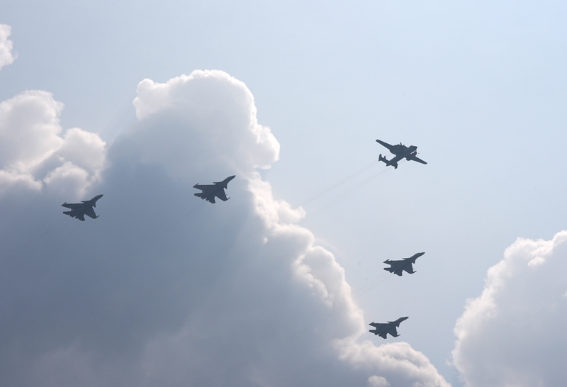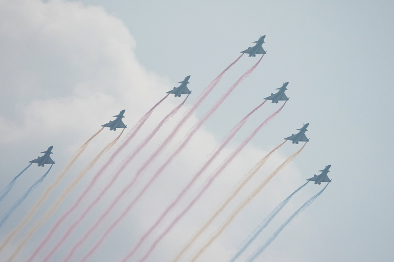9月3日,紀(jì)念中國人民抗日戰(zhàn)爭暨世界反法西斯戰(zhàn)爭勝利80周年大會在北京隆重舉行。這是教練機(jī)梯隊接受檢閱。