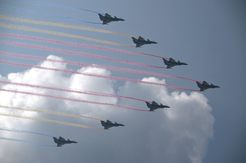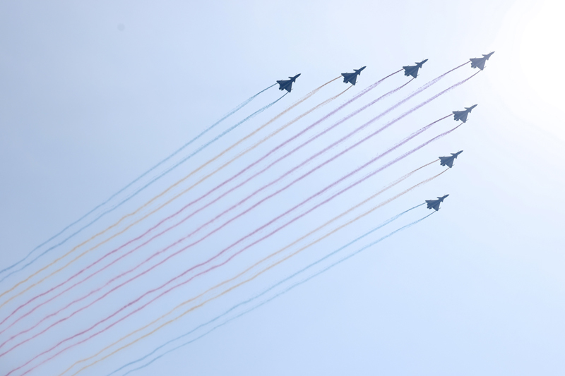 9月3日,紀(jì)念中國人民抗日戰(zhàn)爭暨世界反法西斯戰(zhàn)爭勝利80周年大會在北京隆重舉行。這是空中梯隊接受檢閱。