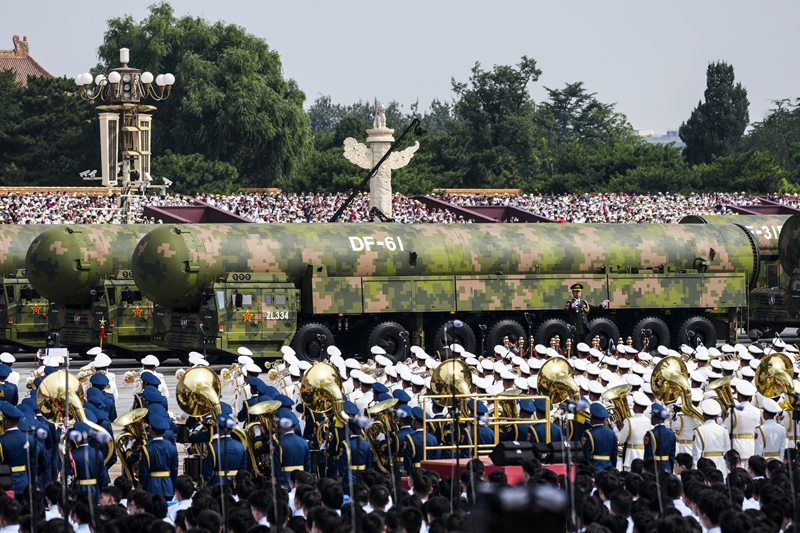 9月3日,紀(jì)念中國人民抗日戰(zhàn)爭暨世界反法西斯戰(zhàn)爭勝利80周年大會在北京隆重舉行。這是核導(dǎo)彈第一方隊接受檢閱。