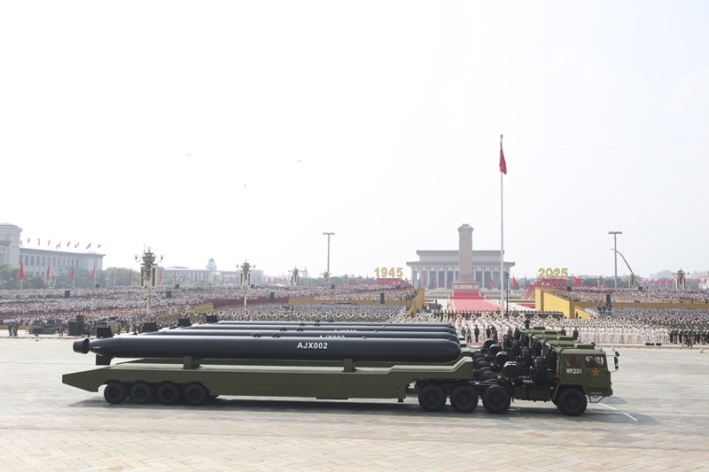 9月3日,紀(jì)念中國人民抗日戰(zhàn)爭暨世界反法西斯戰(zhàn)爭勝利80周年大會在北京隆重舉行。這是高超聲速導(dǎo)彈方隊接受檢閱。