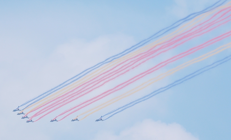 9月3日,紀(jì)念中國人民抗日戰(zhàn)爭暨世界反法西斯戰(zhàn)爭勝利80周年大會在北京隆重舉行。這是教練機梯隊接受檢閱。